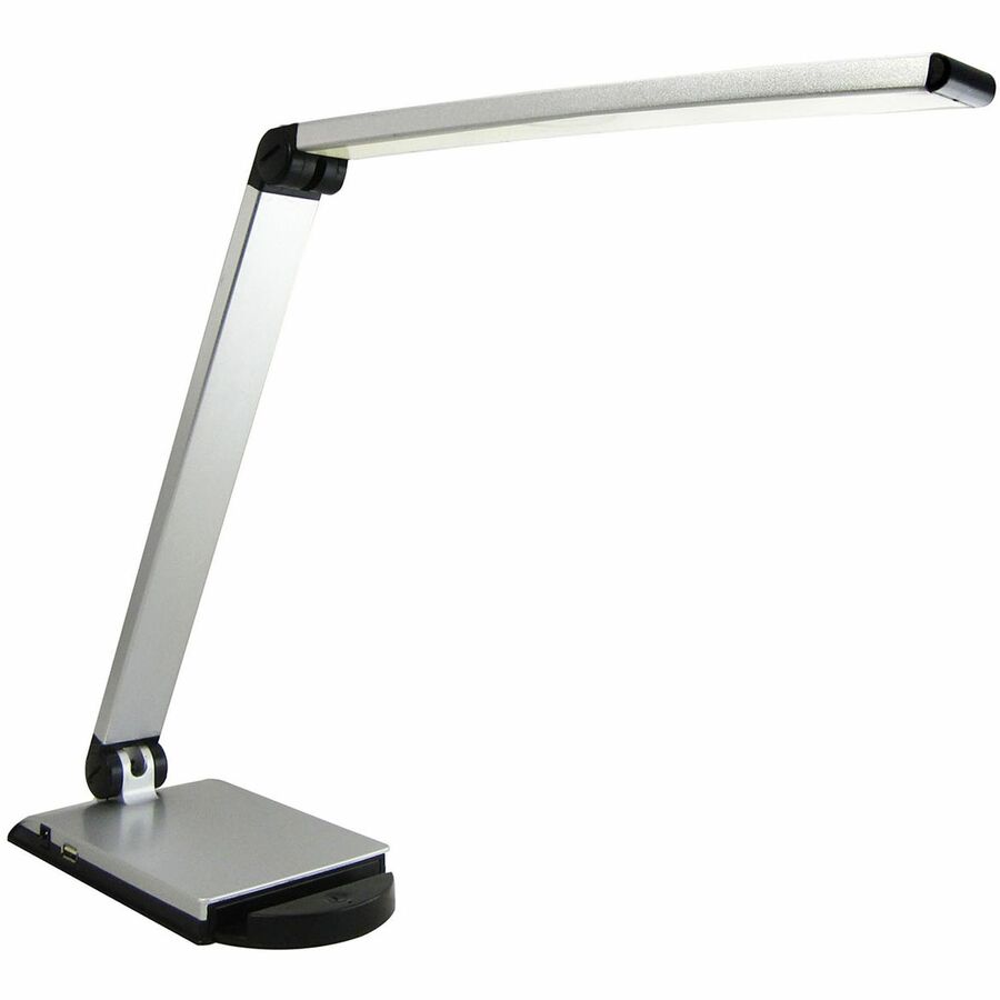 Versatile task light focuses the right amount of light just where you need it and offers a smart device slot and USB charging port (at rear of lamp base) to keep up with your fast-paced schedule. Shade bends up to 180 degrees. The lower hinge can bend forward. Light is generated by 8-watt SMD LED module that is irreplaceable. Dimming switch offers three levels of light as well as an on/off function. LED Task Light is made of aluminum and plastic. It includes a DC adapter and a power cord almost 6′ long. Lamp is for indoor use only.