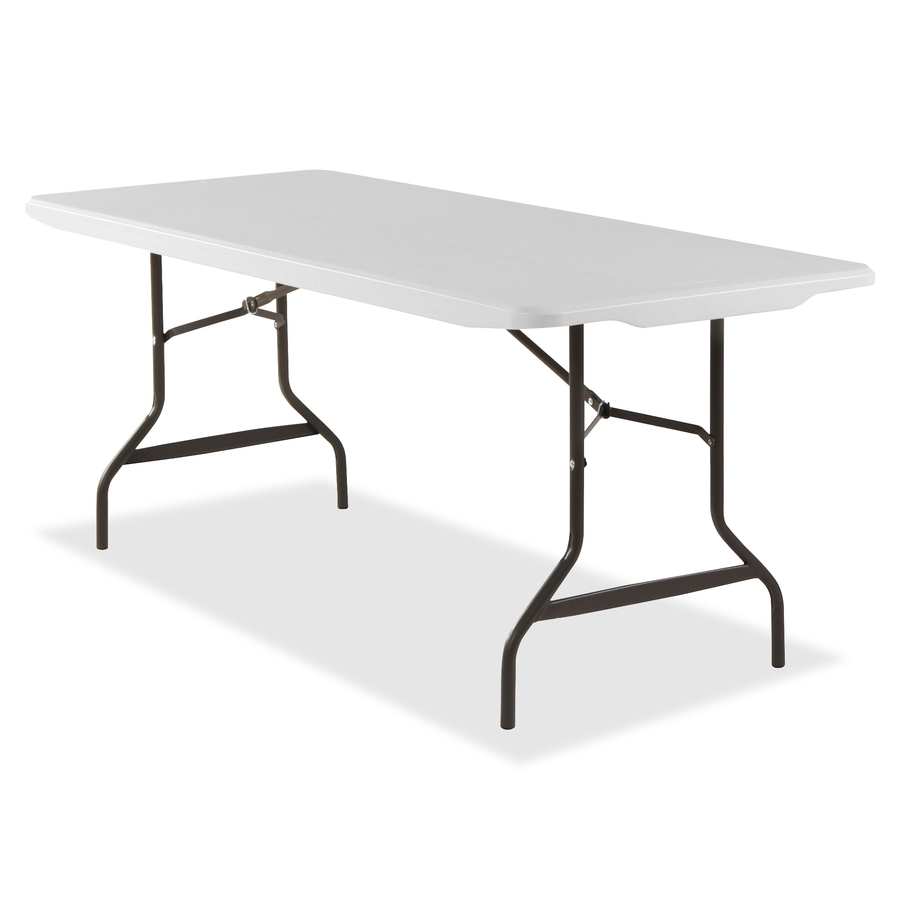 Rectangular banquet table is designed for light-duty use indoors or outdoors. The 2″ thick, square-edge top is made of blow-molded, high-density polyethylene for a sturdy surface. 1″ tubular steel legs are powder-coated for durability. 60″ wide table supports up to 500 lb. evenly distributed and comfortably seats six.