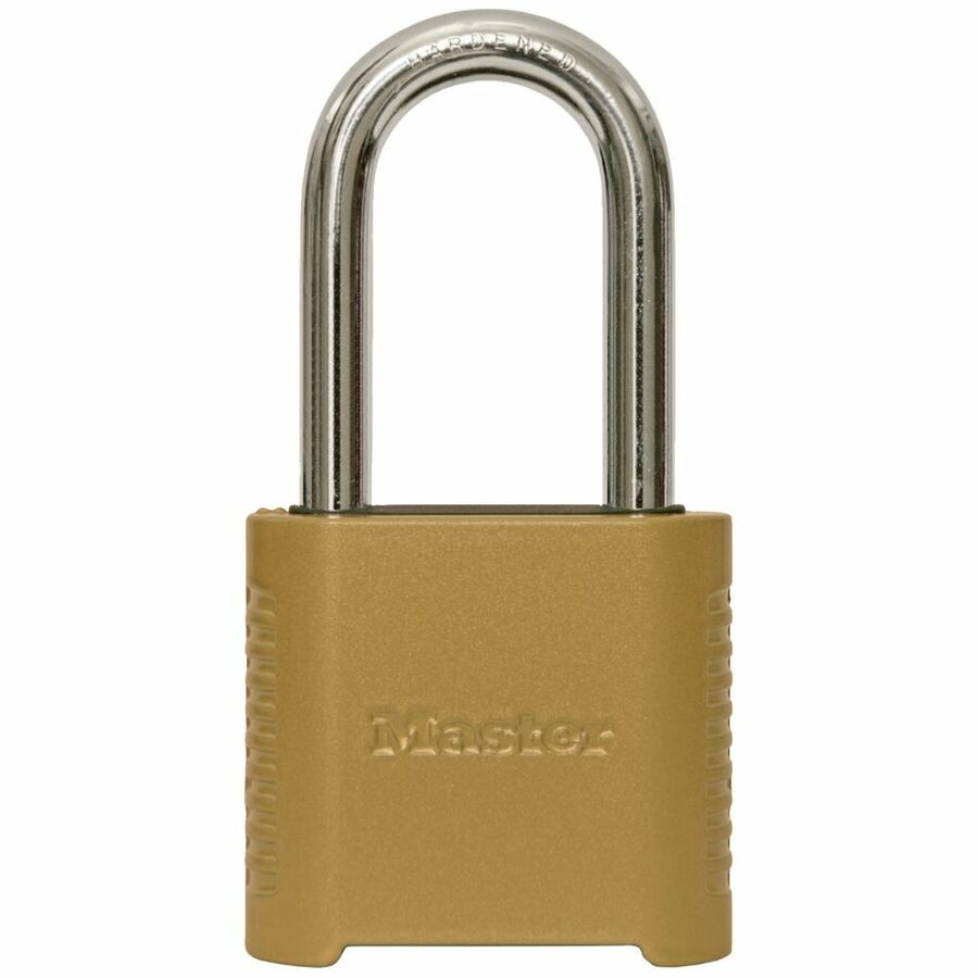 The Master Lock No. 875DLH padlock features a 2in (51mm) wide zinc body for strength and reliability. The 5/16in (8mm) diameter shackle is 2in (51mm) long and made of hardened steel, offering extra resistance to cutting and sawing. The roller pin mechanism provides maximum protection against attacks. The shackle seal offers superior weather protection. The lock includes set your own combination convenience, without the need for a reset tool. The 4-digit dialing allows for thousands of possible numeric combinations. The Limited Lifetime Warranty provides peace of mind from a brand you can trust.