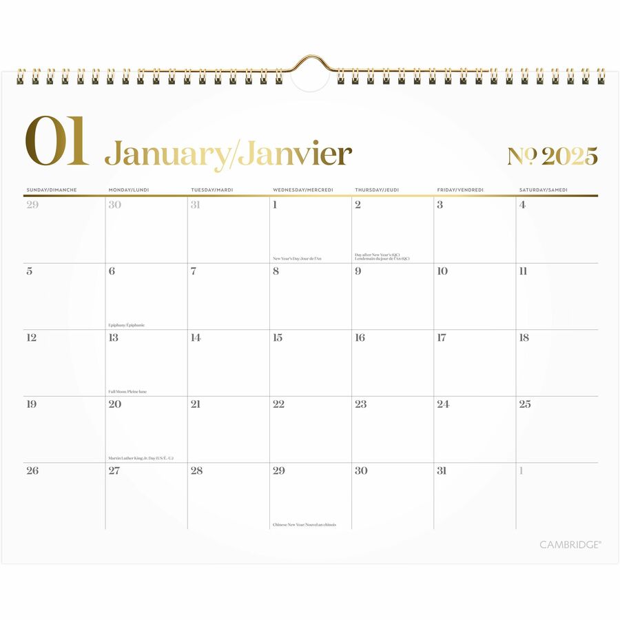 Product Name:WorkStyle Wall Calendar 15″ x 12″ Bilingual White/Gold
