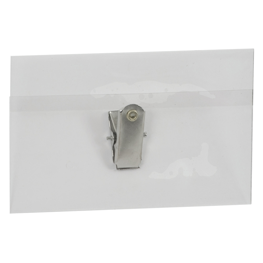 Merangue Fold-over Name Badge Kits. Perfect for meetings, conferences and other group get togethers. Simple fold over design – just lift the flap and insert the card. Kits include clear plastic badge holders with white printable inserts. 2-1/8″ x 3-1/2″.