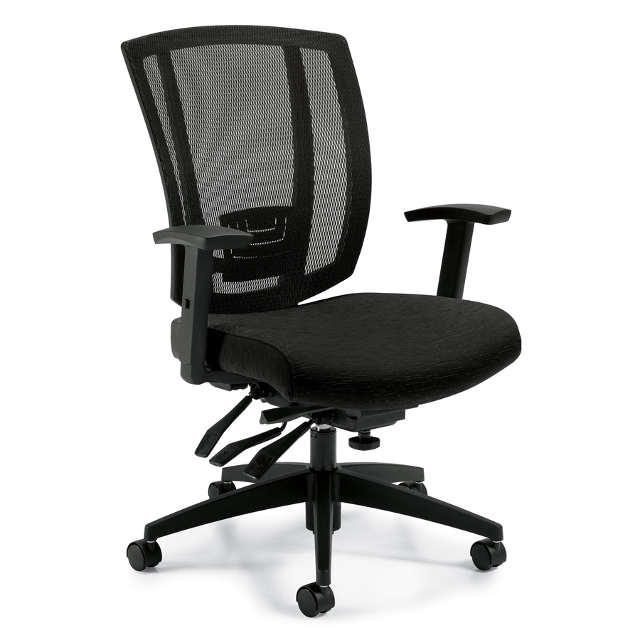 Marketing Information:Global Offices To Go Avro Chair. Medium Back Multi-Tilter. Built with ergonomic features to promote good posture and provide maximum comfort. Infinite back and seat angle adjustment. Tilt tension control. Features height adjustable, self-skinned urethane armcaps.