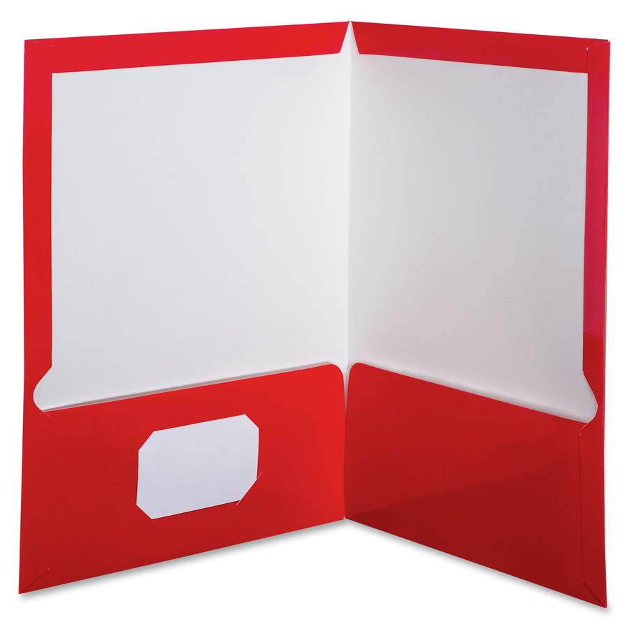Portfolios are made of distinctive high-gloss laminated cover stock to resist soil and moisture. Twin-pocket folders have generous, twin wing-style pockets that hold 100 sheets of letter-size loose papers. Each folder has a die-cut, business card holder on inside left pocket.