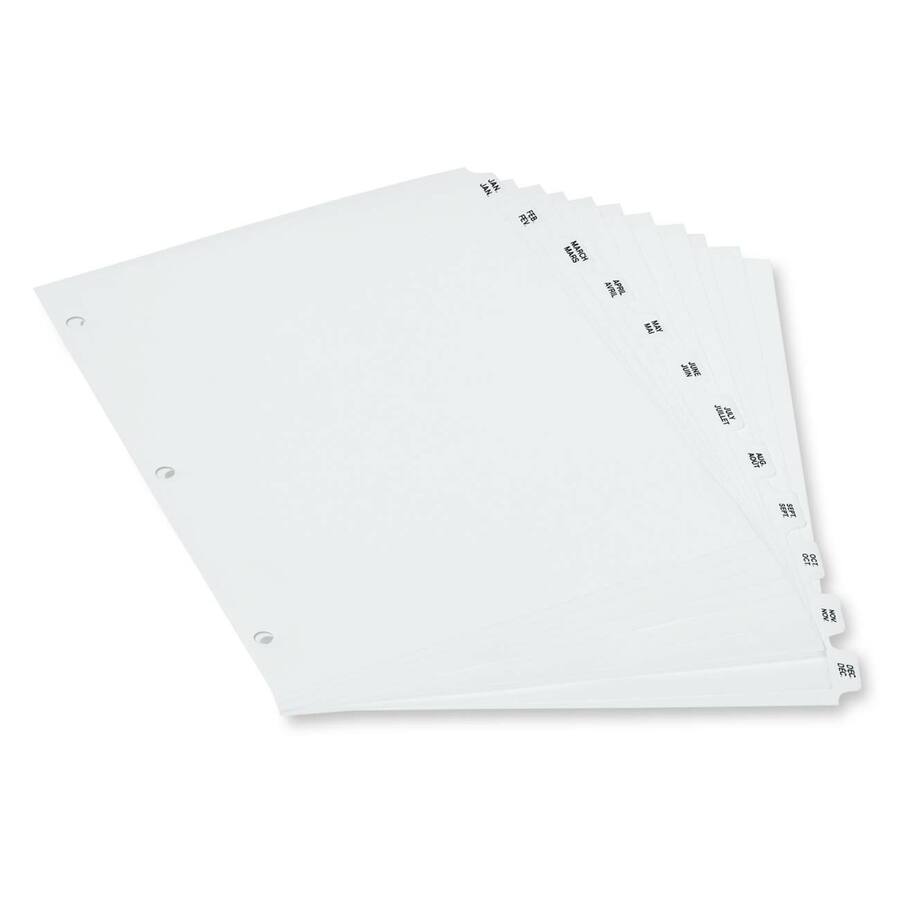 Poly index dividers feature tab titles in a bilingual format to accommodate both French and English speaking users. Durable polypropylene construction is acid-free to prevent yellowing over time. Titles are preprinted in large, bold type on both sides for easy visibility. Letter-size dividers are prepunched to fit standard three-ring binders (sold separately).