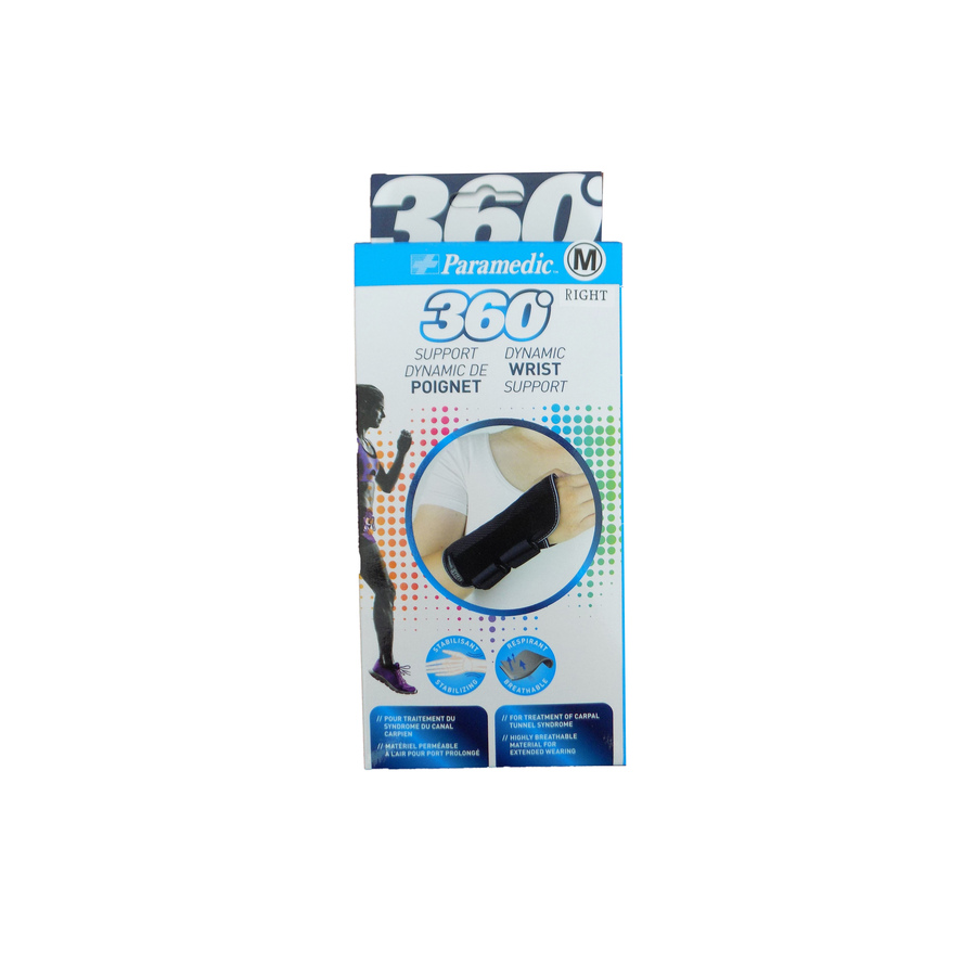 The Paramedic 360° DYNAMIC Wrist support provides light compression to the articulation and muscles. It is designed to stabilise and prevent wrist overuse syndrome, retrogression of the wrist joint, as well as to treat other wrist injury. The gel capsule also provides massage to the wrist tendons which helps to relieve strains.