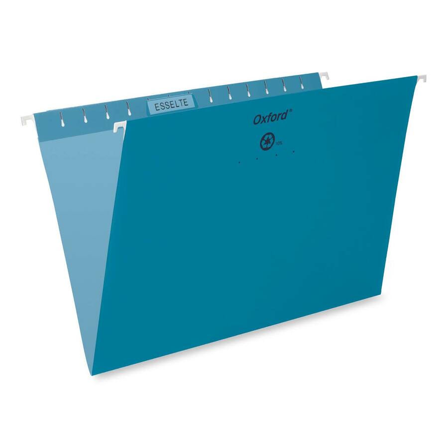 Colored hanging file folders help you organize your documents. Made with crimped style hanging rods for added strength, these durable folders handle multiple documents at a time. Folders offer 1/5-cut tabs and accent colored interiors to prevent misfiles. Eco-friendly design is made with post-consumer material to minimize environmental impact. File folders are perfect for storing files in offices, homes, schools and more.