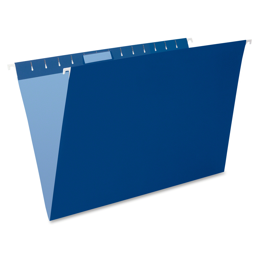 Colored hanging file folders help you organize your documents. Made with crimped style hanging rods for added strength, these durable folders handle multiple documents at a time. Folders offer 1/5-cut tabs and accent colored interiors to prevent misfiles. Eco-friendly design is made with post-consumer material to minimize environmental impact. File folders are perfect for storing files in offices, homes, schools and more.
