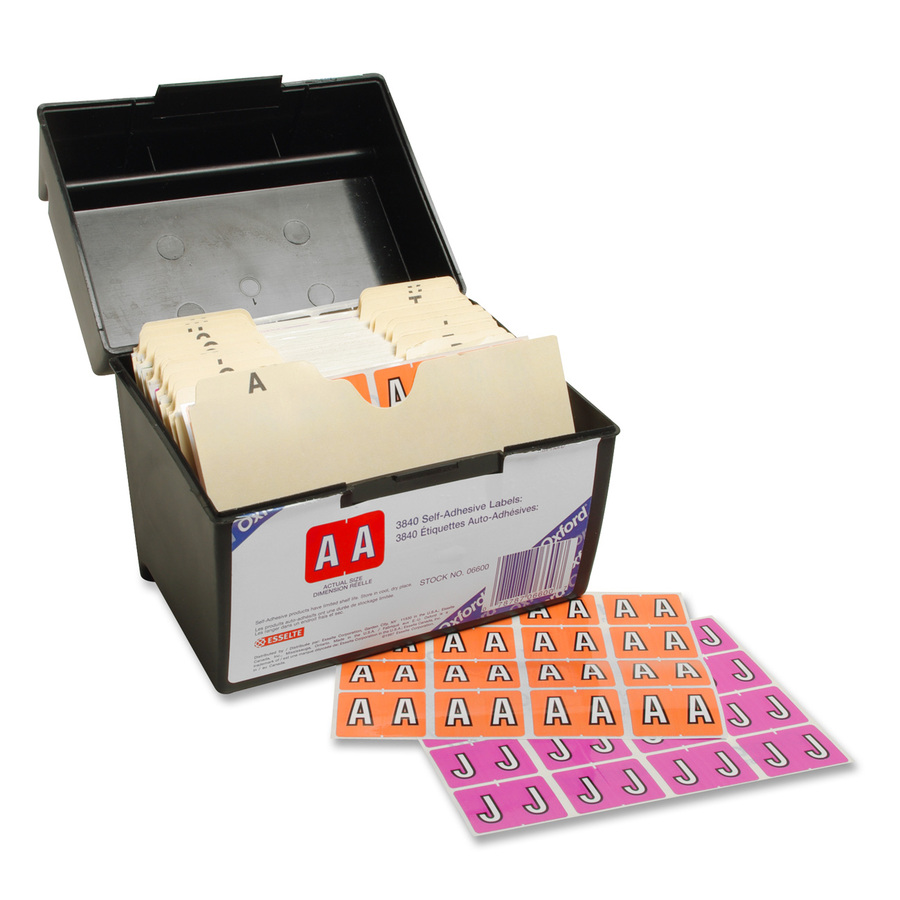 Color-coded alphabetical shelf folder labels are designed for shelf or end-tab filing. Alphabetic filing typically uses first two letters of surname and first letter of first name to determine order of files. Color-coding these alphabetic references saves filing time, reduces misfiles, and makes finding files easier. Convenient self-stick allows fast application. Compatible with DataFile L8701 and L8702 series.