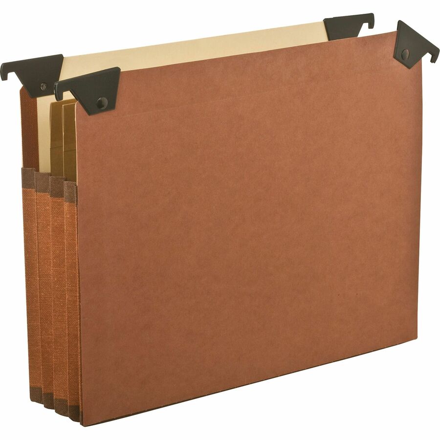 Premium file pockets feature plastic hooks that swing out to file on rails, stabilizing files in the drawer. Hooks swing down out of the way for active use. Unique double-reinforced, cross-bonded, rip-proof spun-polyester gussets offer total strength and flexibility. Tops are laminated for extra reinforcement. Red fiber file pocket also has tape reinforcing strips at critical wear points and three dividers with tabs for categorizing contents with tab inserts included. 3-1/2″ expansion file pockets also feature a double-thick front, manila lined back and moisture-resistant coating.
