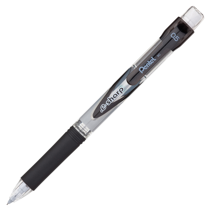 E-Sharp mechanical pencils feature the Pentel Lead Maximizer so you can get more use than ever from each lead piece. Continuous lead-feed mechanism mechanically propels reserve lead into sleeve, saving time and lead. Super Hi-Polymer HB Lead never needs sharpening and is equivalent to a No. 2 pencil. Design includes a large ergonomic barrel and rubber grip for added comfort and control as well as a top click and eraser. Pencils are refillable with Pentel’s Super Hi-Polymer Lead and PDE-1 large refill eraser.