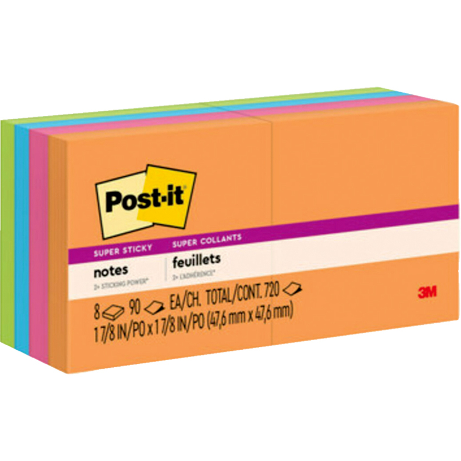 Post-it Super Sticky Notes feature a unique adhesive so your notes will stick securely to more surfaces. Now you can stick your notes where they’ll really get noticed – like monitors, doors and walls. In a perfect size for reminders or a short to-do list, Super Sticky Notes hold longer and stronger than original notes yet remove cleanly. The Rio de Janeiro Color Collection is expressive and dramatic with colors celebrating this Brazilian metropolis. Super Sticky Post-it Notes are recyclable, and the paper in Post-it Notes is sourced from certified, renewable and responsibly managed forests.