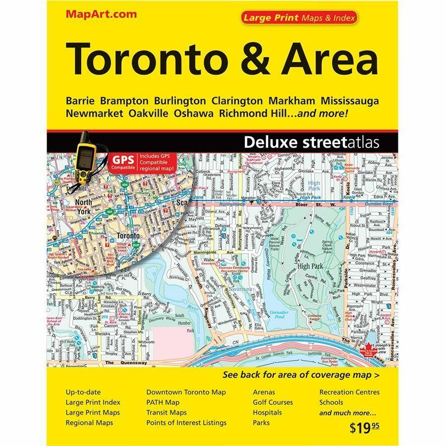 - The highly detailed streets maps include many features, such as park and conservation areas, golf courses, recreation trails, subways, go transits, ferries, librairies, arenas, pools, skiing locations, schools and much more