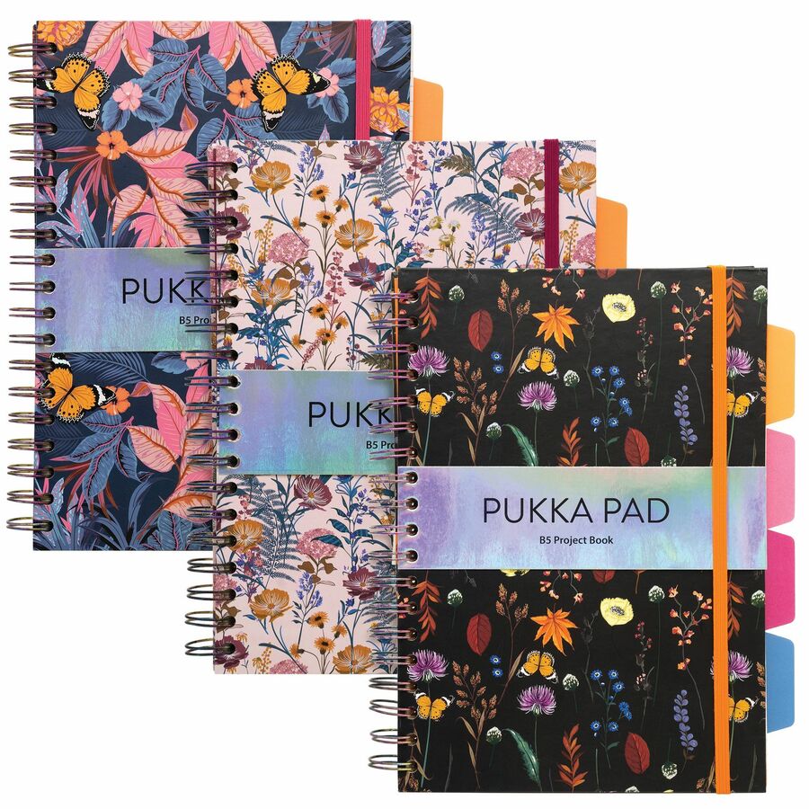 The Pukka Pads Bloom project books are ideal for organising all types of notes. Each project book has 4 patterned dividers that are repositionable, this allows you to conveniently separate and categorise your projects or subjects effortlessly. Each project book has 200 pages of high-quality 80 GSM FSC® Certified ivory paper which is 8mm lined. Our Bloom project books are premium in feel with high-quality paper that creates a smooth writing surface and a holographic hardback cover with iridescent twin wire binding.