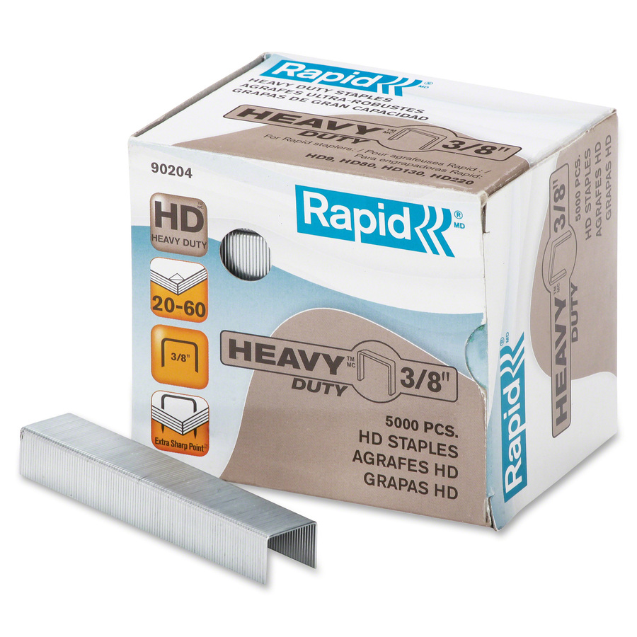 Heavy-duty chisel point staples with 1/2″ wide crown and 3/8″ leg length come in strips of 100 and fit 73131, 73135, 73136, 02033, 73110 and 73159 staplers. They staple 30 to 60 sheets.