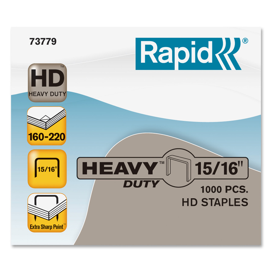 Heavy-duty chisel point staples with 1/2″ wide crowns and 9/16″ , 15/16″ or 1/2″ leg lengths come in strips of 100 and fit most all traditional heavy-duty staplers. Heavy-duty chisel point staples staple 30 to 60 sheets.