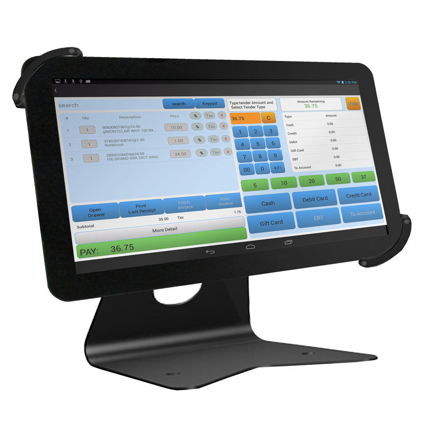 Tablet POS system offers an effective solution to operate, manage and grow your business with no monthly fees. The easy guide screens will help you quickly set up your point of sale system to your specific needs so that you can spend your time doing more important things, like running your business. Pre-programmed rates for each Canadian provincial tax rate system will help you set up your tax system with ease. Search button provides a fast way to look up your items by name or by the item number. Item button shows you all of the items within a department for quick reference. Tablet POS system includes a 10″ tablet, Smart 360 POS software and AC power supply.