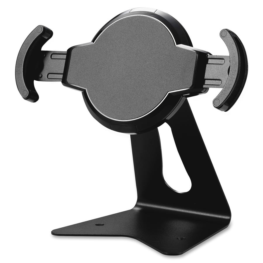 Tablet stand features locking brackets to keep your tablet securely in place while ringing up customers. Padded bracket holds your tablet tightly without damaging the screen. Adjustable design rotates and tilts to enhance your tablet’s visibility during use. Anti-theft lock and key provide extra protection against theft. Base holes and screws allow you to permanently place the stand onto a table or counter. Tablet stand is designed for use with virtually all tablets (sold separately) up to 13.6″.