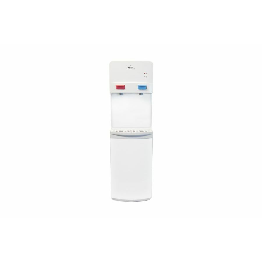 Uses highly efficient compressor to dispense hot and cold water using the convenient push button controls 2-step safety child lock on the hot water button, LED indicator light displays dispenser status. Energy Star and BPA certified. For use with standard 3-gallon and 5-gallon bottles. 11″W x 11-2/5″D x 36-2/5″H. White.