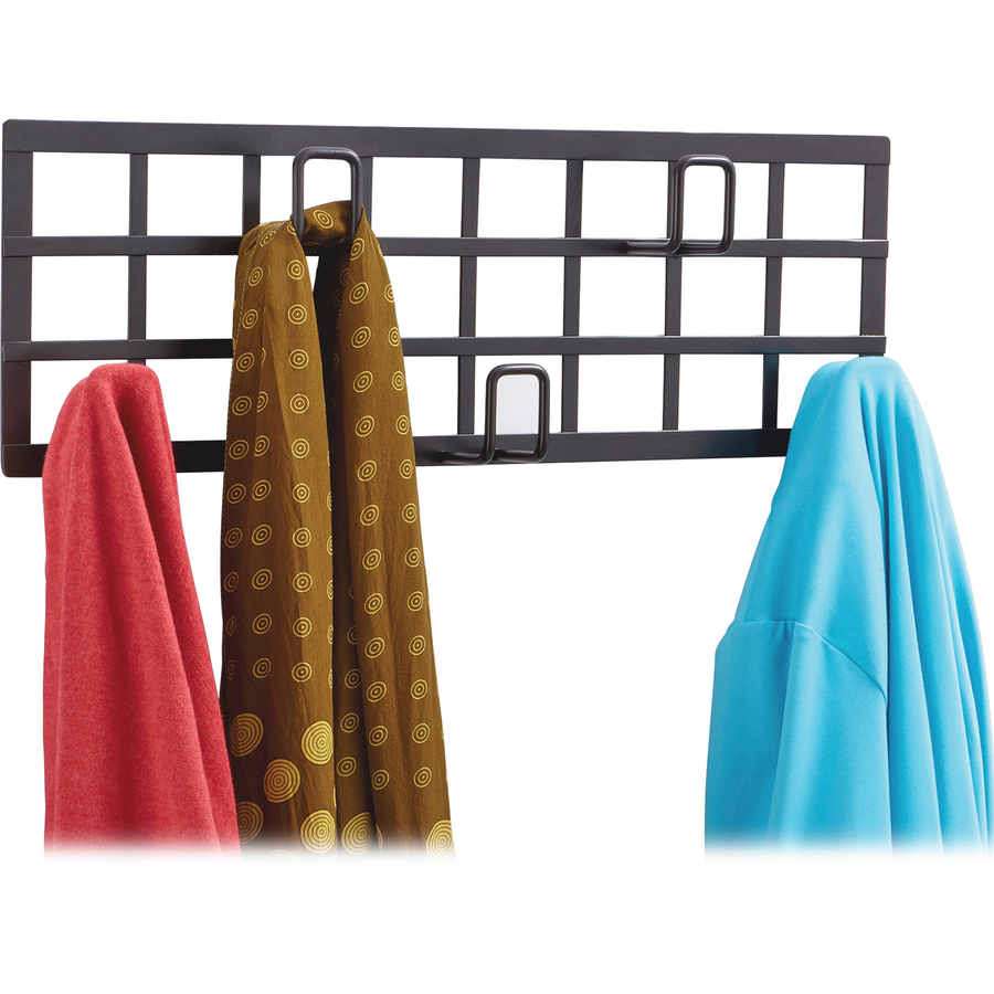 Make your first-impression areas stand out with the stylish and ultra-modern Grid Coat Rack. The grid pattern will bring a unique feeling to your waiting area, lobby or reception area. Constructed of steel, this coat rack is durable for high-traffic areas. Design features five hooks to ensure guests or employees have a place to hang their hats, coats and scarves. Use the included hardware to mount the rack. Keyhole hooks hang on the screws attached to the wall. Weight capacity is 20 lb., evenly distributed over all five hooks.
