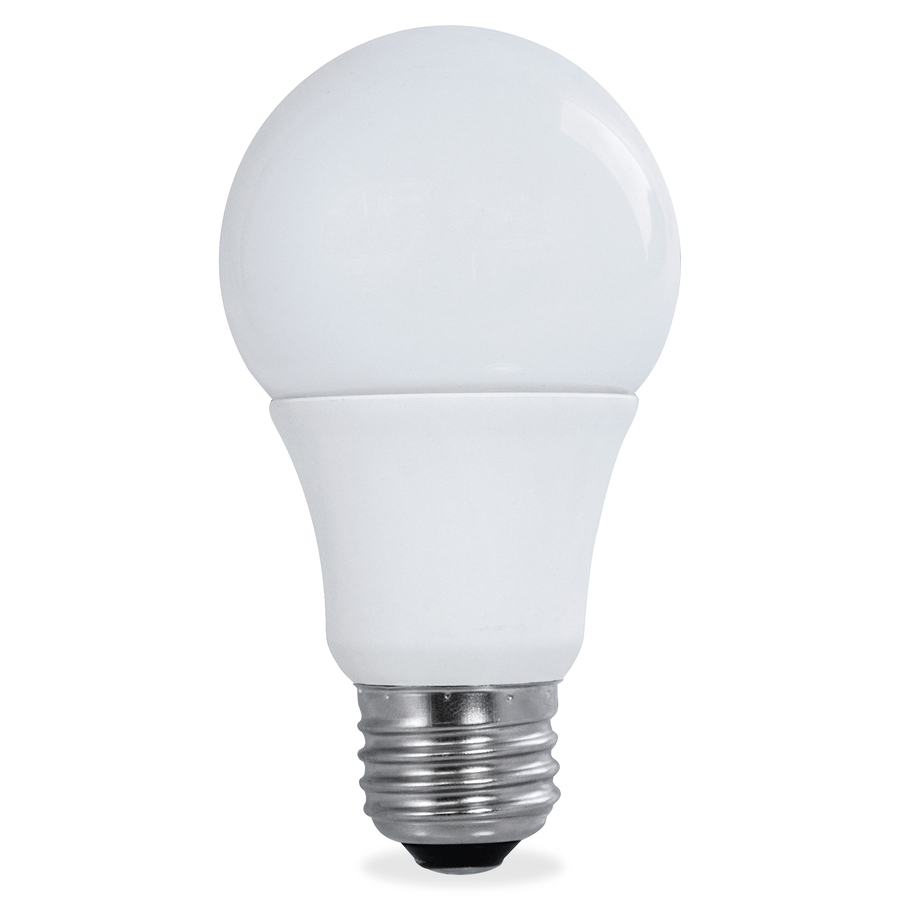 LED A19 bulb with a frosted finish delivers 800 lumens of natural light for up to 10,000 hours. Solid state LED lighting offers a 200-degree beam spread. Nondimmable bulb is approved for use in enclosed fixtures. 120-volt bulb also features an E26 ANSI base, 80 CRI and 5,000 Kelvin temperature.