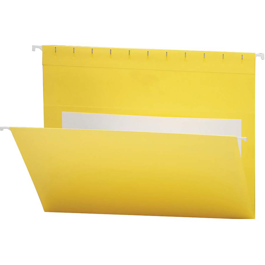 Hanging file folders come in 13 bright, distinctive colors. Use them to color-code specific kinds of documents, or choose colors that complement your office decor. Folders feature coated rod tips. They are slotted inside front and back to accept tabs (tabs not included). Contain post-consumer recycled material. SFI Fiber Sourcing Certified.