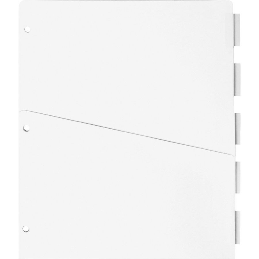 Tab dividers feature a 4″ deep pocket with CD/disk holder and diagonal shape for easier insertion. Pocket accommodates 8-1/2″ x 11″ sheets. Rip-proof, clear tabs with beaded design allow easy insertion of tab titles. Tab dividers are made from top-quality, 7 point index stock.