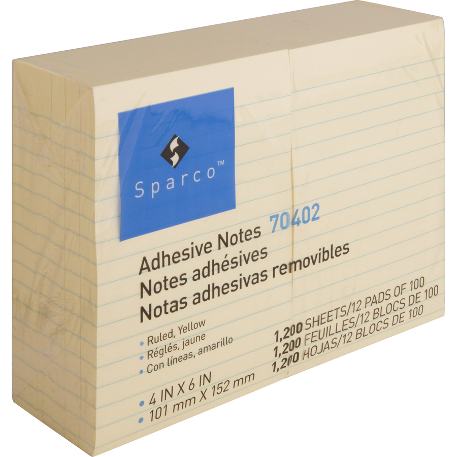 Ruled adhesive notes stay firmly in place and remove without marks or spots. Apply and reapply. The ruled format makes notes perfect for jotting down lists, notes or messages. Adhesive notepads feature solvent-free adhesive. Each pad includes 100 sheets.