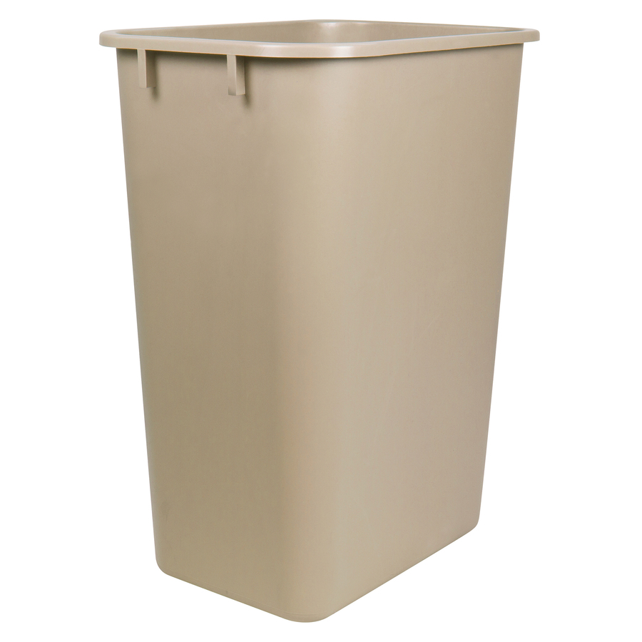 Washable waste basket features an all-plastic construction that will not rust, dent or chip. Compact size fits easily under standard desk heights or kitchen cabinets to keep unsightly waste hidden from view. Eco-friendly design is made from a high percentage of recycled material for a reduced impact to the environment. Rolled edge adds additional support and strength for long-lasting use.