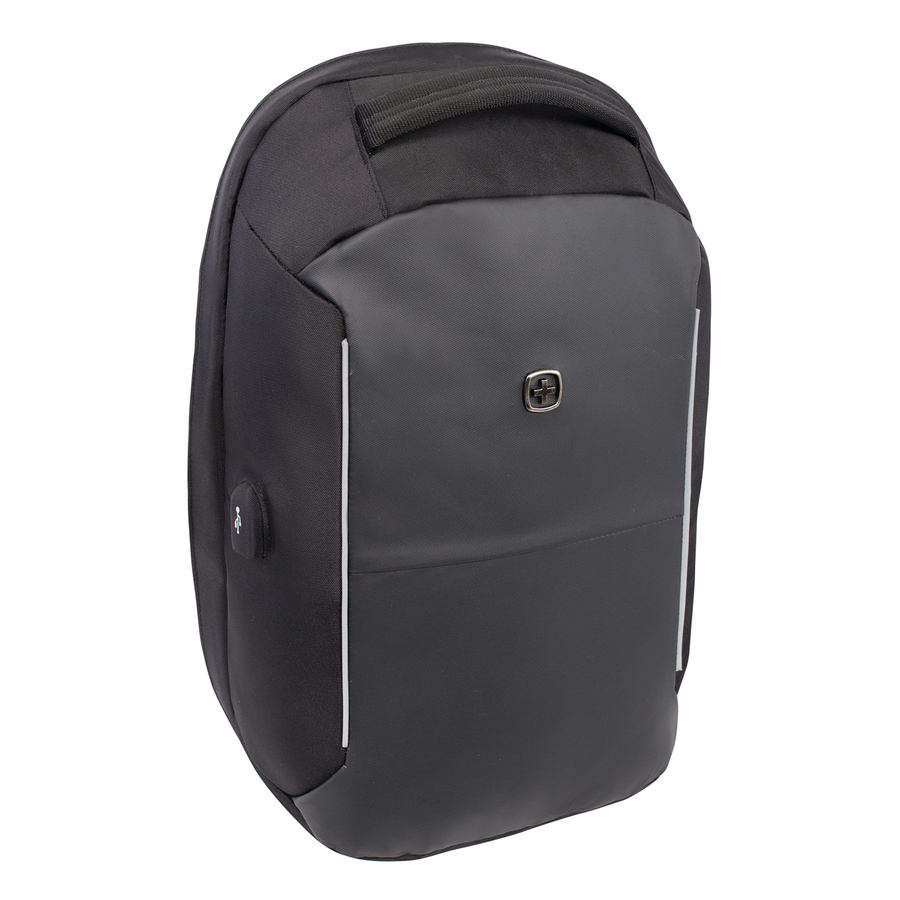Eliminates exterior pockets to camouflage gear in any environment Multi-use built-in organizer. Reflective piping on front & rear of bag. Tuck-away rain hood. Built-in power ready USB port. Zip-away bottle pocket. Secret hidden pocket. Back panel allows bag to slide easily over retractable handle system. RFID Protection against identity thieves. Comfortable padded back and adjustable shoulder straps. Fits most 15.6″ laptops, and most tablets in their protective sleeve. 900D gucci/600D reversed polyester. 11-13/16″W x 5-29/32″D x 18-1/9″H. Black.