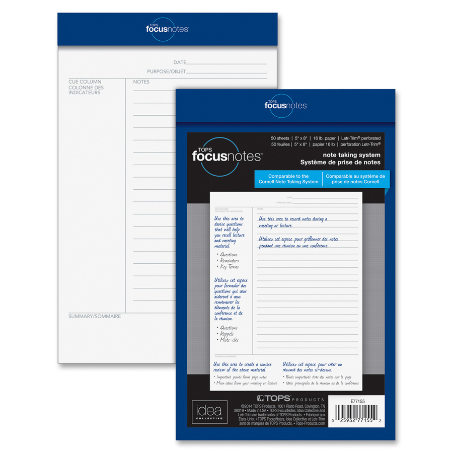 With FocusNotes, you can divide the page in just three easy steps and conquer meetings, lectures and more. Comparable to the Cornell Note-taking System, this three-step method gets you focused with a cue column, ruled note-taking area and summary section on each sheet. Plus, note organization is easy with date and purpose fields at the top of each margin. Letr-Trim perforated sheets allow clean and consistent page removal. Junior legal size is perfect for on-the-go note-taking.
