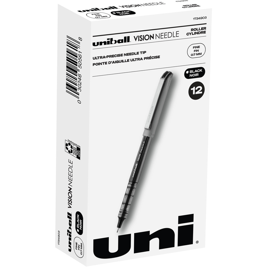 Stock your office, home or classroom with Vision Needle Stick Rollerball Pens. Long-lasting, 0.7mm fine point is designed with a bend-resistant tip for better accuracy. Even-flowing, pigment-based roller ink delivers a smooth writing experience for reliably smooth, vivid lines and a rich color for improved clarity and readability. Fine needle point forms ultra-precise, straight-edge lines with ease. Pens create bold, precise letters, numbers and graphics. Innovative, uni Super Ink technology effectively entraps liquid ink into the paper, producing fraud-resistant, fade-resistant and water-resistant documents that prevent check washing and bleaching. Exclusive, uni-Flow Ink System ensures a consistent, fluid writing experience. Translucent window lets you see when your ink is low to avoid running out.