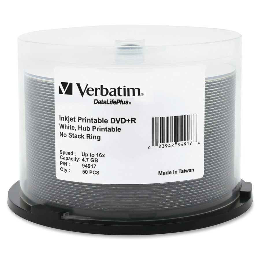 Marketing Information:Combining an exceptional inkjet printable surface with professional grade, Metal Azo, recording performance and reliability, DataLife Plus White Hub Inkjet Printable DVD+R with 4.7GB is the ultimate choice for developing, customizing and distributing DVD content. Certified for 1X-16X DVD recording and preferred by DVD+R drive manufacturers, DataLife Plus DVD+R uses an advanced Metal Azo recording dye to provide the highest level of performance, compatibility, and archival life. DVD+Rs have been extensively tested and qualified for use with DVD/CD inkjet printers and duplicators offered by such leading industry manufacturers as Primera, Microboards and Epson. Compatible for full-surface, edge-to-edge printing. Superior ink absorption on high-resolution printer. Crisp and clear text reproduction. Crisp and clear text reproduction. Superior archival life.