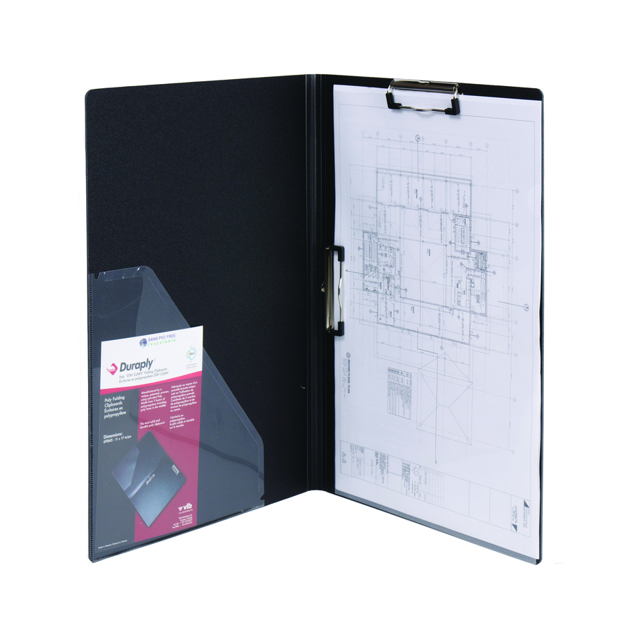 Clipboard features an ultra-durable design for lasting use in nearly any environment. Foldable construction keeps your papers safely stored. Double clips make it usable in either portrait or landscape formats. Interior pocket offers a handy location to store loose items.