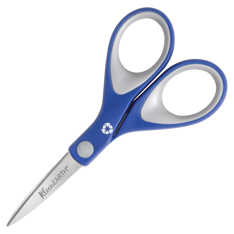 6″ lightweight scissors are designed for comfort and precision control. Comfortable, ambidextrous soft handle is earth-friendly. Straight blue handles contain a high percentage of recycled plastic. Sharp blades are made of precision-ground stainless steel for durability. KleenEarth Soft Handle Scissors are designed for left-handed or right-handed users.