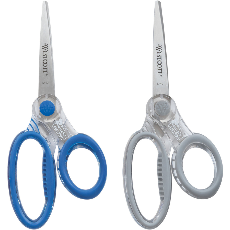 Pointed scissors are infused with antimicrobial protection to inhibit the growth of bacterial odors. Ultra-durable handles with soft inserts provide a comfortable grip through extended use. Corrosion-resistant, stainless steel blades provide consistent cuts to prevent forceful use. Scissors are perfect for offices, classrooms, breakrooms and more.