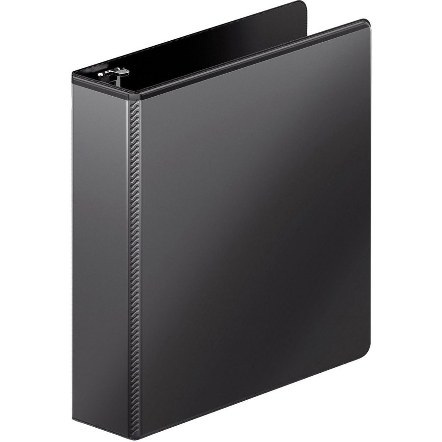 D-ring binder features a heavy-duty construction to withstand the rigors of daily use. Strong, durable polypropylene material resists cracking and tearing. No-gap, D-rings eliminate misalignment and hold 25 percent more sheets than conventional round rings of the same size. Pocket guard provides a convenient location to hold loose documents. Anti-glare overlay on the outside fronts, backs and spines completely displays customized title pages. ENVI Heavy-duty Customizer D-ring Binder also offers a Tough Hinge that adds increased strength, 2″ capacity and a textured-like grained, professional-looking finish.