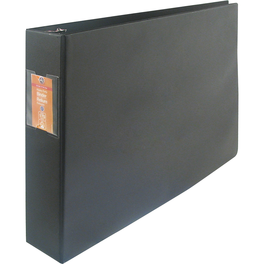 Heavy-duty large format 11″ x 17″ D-ring binder holds paper punched with standard three-ring hole punch. Specially designed to handle large-size color copies, large-format spreadsheets and page protectors. Made of sturdy 12 point polyolefin. Binder features a flat spine and is oversized to accommodate page protectors.