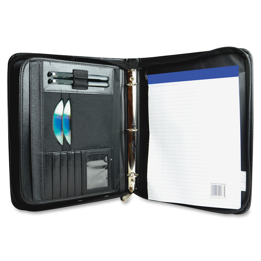 Vinyl binder with a three-ring, 1″ spine provides exactly what you need to keep more of your items in one place. Interior expanding pocket helps you stay organized while you obtain more files and documents. Pen loops ensure your writing utensils are always within reach. Exterior side pocket keeps your frequently used items readily available. Letter-size memo pad is perforated to allow clean page removal when needed.