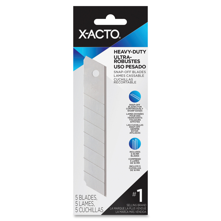 Heavy-duty replacement blades are designed for use in the X-Acto Snap-Off Blade Knife. Blade is tough enough to cut through almost any material, including wallpaper, carpeting, vinyl, cord, wire, canvas, matboard, poster board, foam board, cardboard and more. Blade is great for tough home construction projects and renovations. Unique design allows you to snap the blade off when dull to expose an instantly sharp edge.