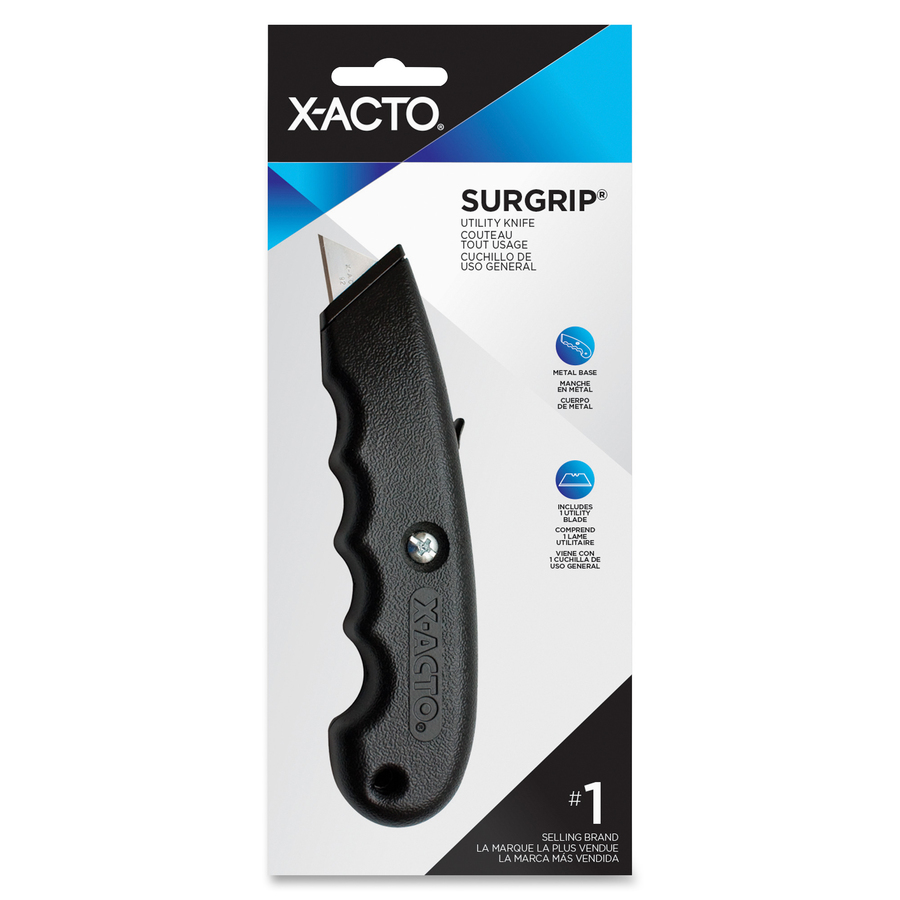 Retractable knife features a heavy-duty, textured metal handle that is shaped to fit hand. Push-button slide adjusts the length of the exposed blade. Blades fully retract into handle for safety. With adjustable cutting depths, utility knife cuts packages, rope, canvas, plastic, carpet and wallpaper. Knife includes a heavy-duty utility blade.